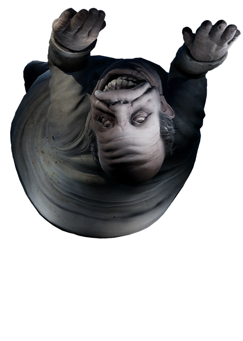 Los rasgos físicos del Doctor se parecen a los de un cadáver hinchado, con enormes dientes que sobresalen visiblemente de un par de encías inflamadas y carne pálida y distendida que parece haber sido inflada. Parece ser de mediana edad, ya que la línea del cabello está retrocediendo y tiene muchas arrugas en la frente y los dedos; en consecuencia, sus ojos se esconden en sus órbitas y miran a su presa al revés. Sus pupilas brillan con un siniestro tono carmesí en la oscuridad.